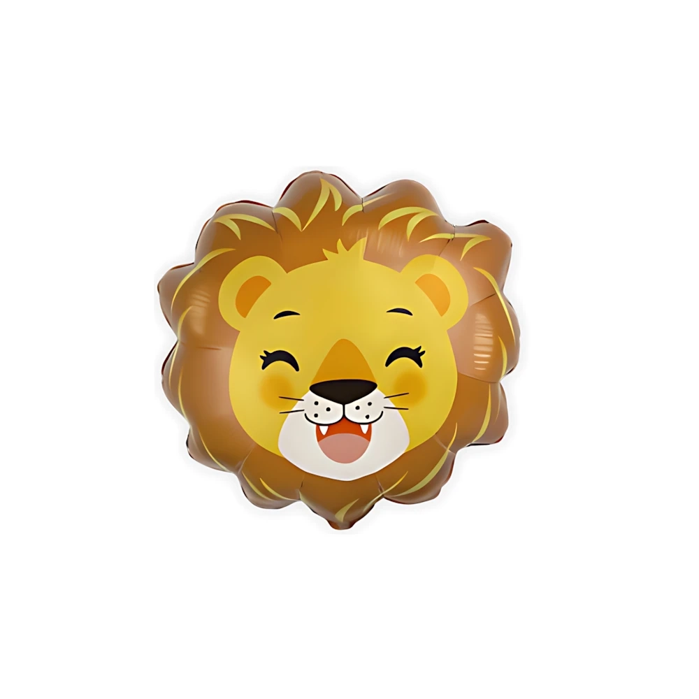 Palloncino in mylar a forma di testa di leone largo 23" (58cm). Perfetto per feste safari o compleanni a tema animali.