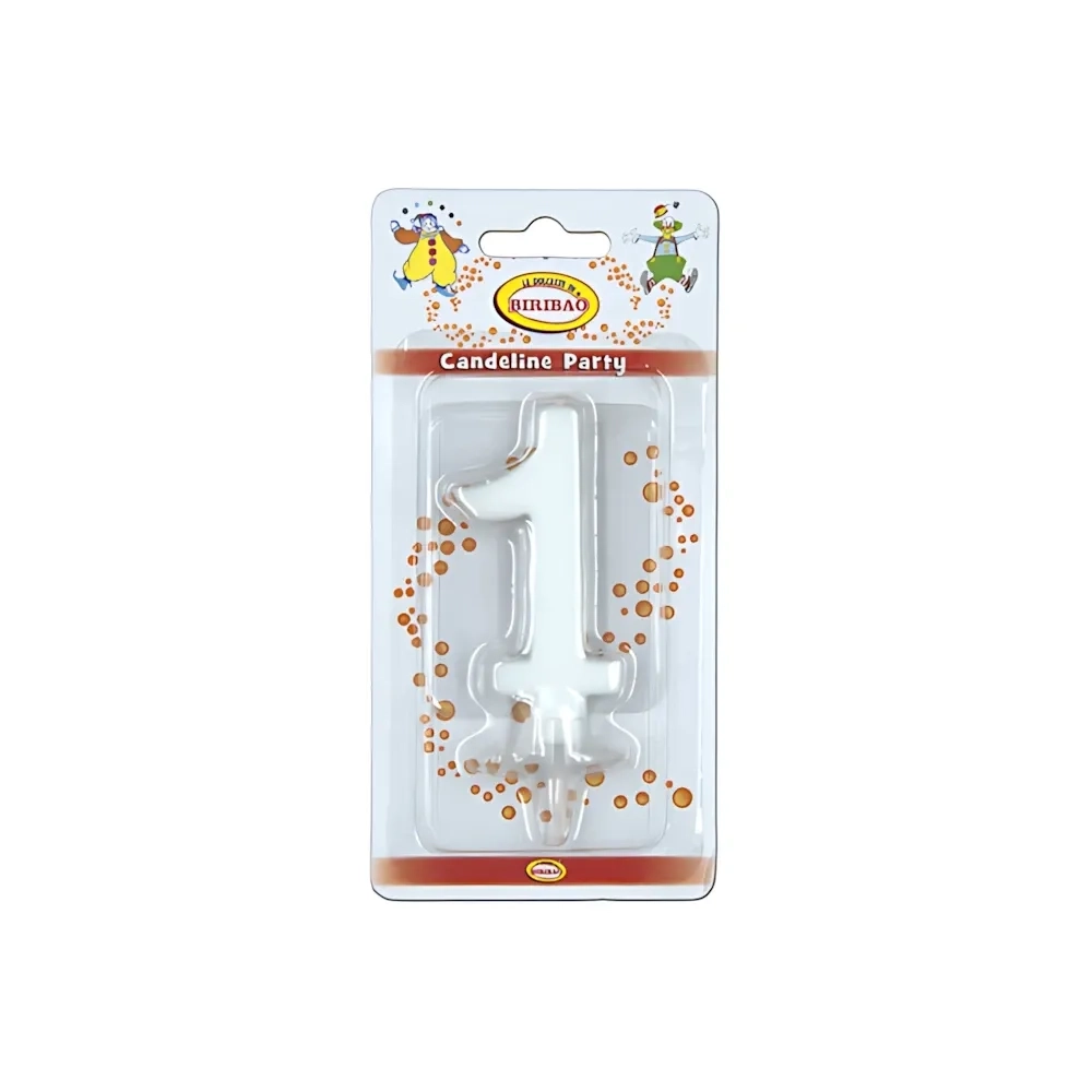 Candelina Biribao mini numero 1 bianca, confezione da 1pz.