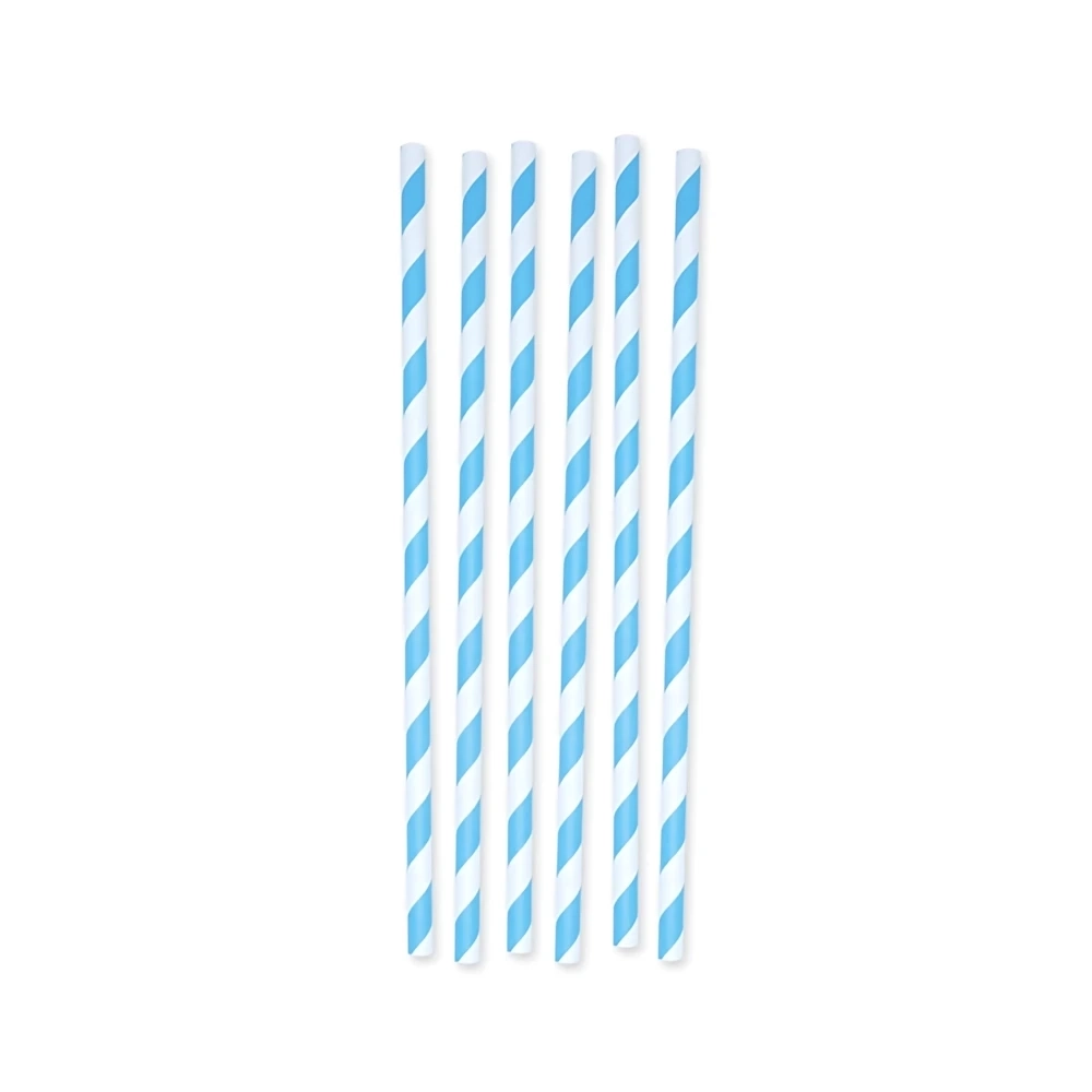 Cannucce Big Party strisce Turchese Ecolor in Carta 26x1cm, confezione da 6pz.