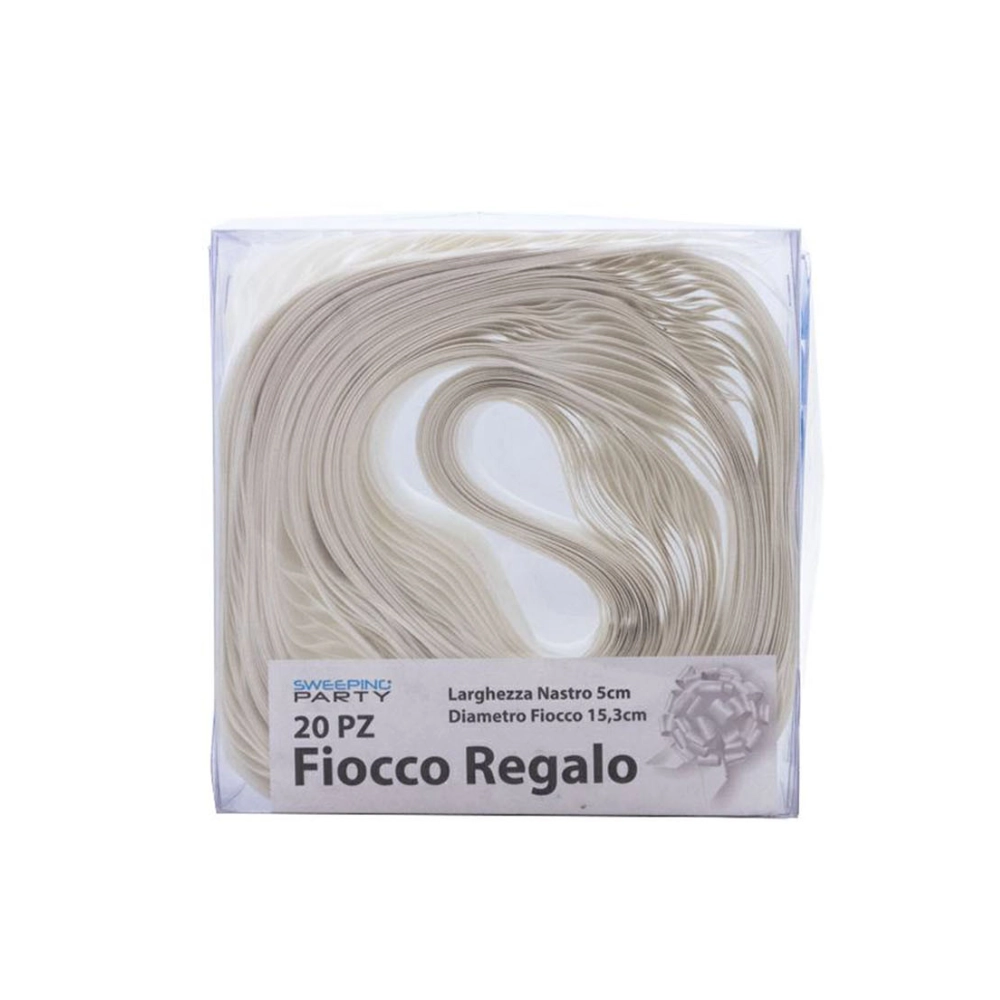 Aggiungi un tocco di purezza e raffinatezza ai tuoi pacchi regalo con il nostro set di 20 coccarde bianche. Grazie alla pratica chiusura a tirante, otterrai un fiocco perfetto e voluminoso in pochi secondi, senza sforzo. La finitura lucida del nastro esalta la luminosità del bianco, rendendole ideali per eventi eleganti come matrimoni, prime comunioni o per confezionare bomboniere delicate. La dimensione da 5x15.3 cm le rende visibili e scenografiche su pacchi di medie e grandi dimensioni.