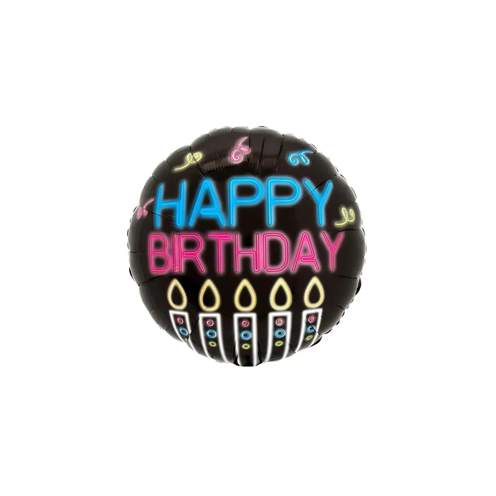 Palloncino Anagram Happy Birthday Neon in mylar/foil, dimensione 18" (45cm), confezione da 1pz.