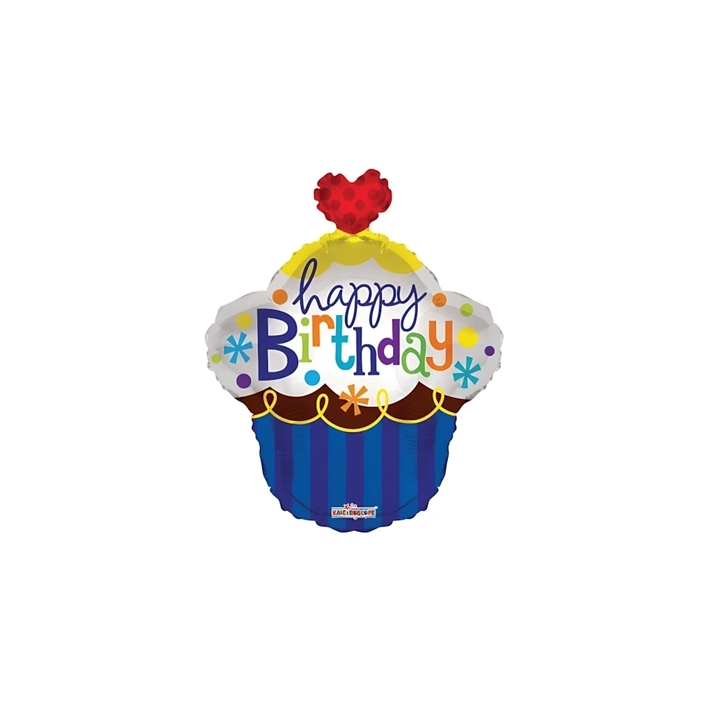 Palloncino Kaleidoscope Happy Birthday Cupcake cuore in mylar/foil, dimensione 22" (55cm), confezione da 1pz.