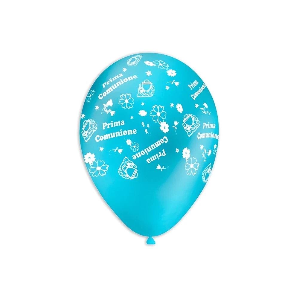 Palloncini 13" (33cm) celeste 80 con stampa bianca globo Prima Comunione, 100pz.