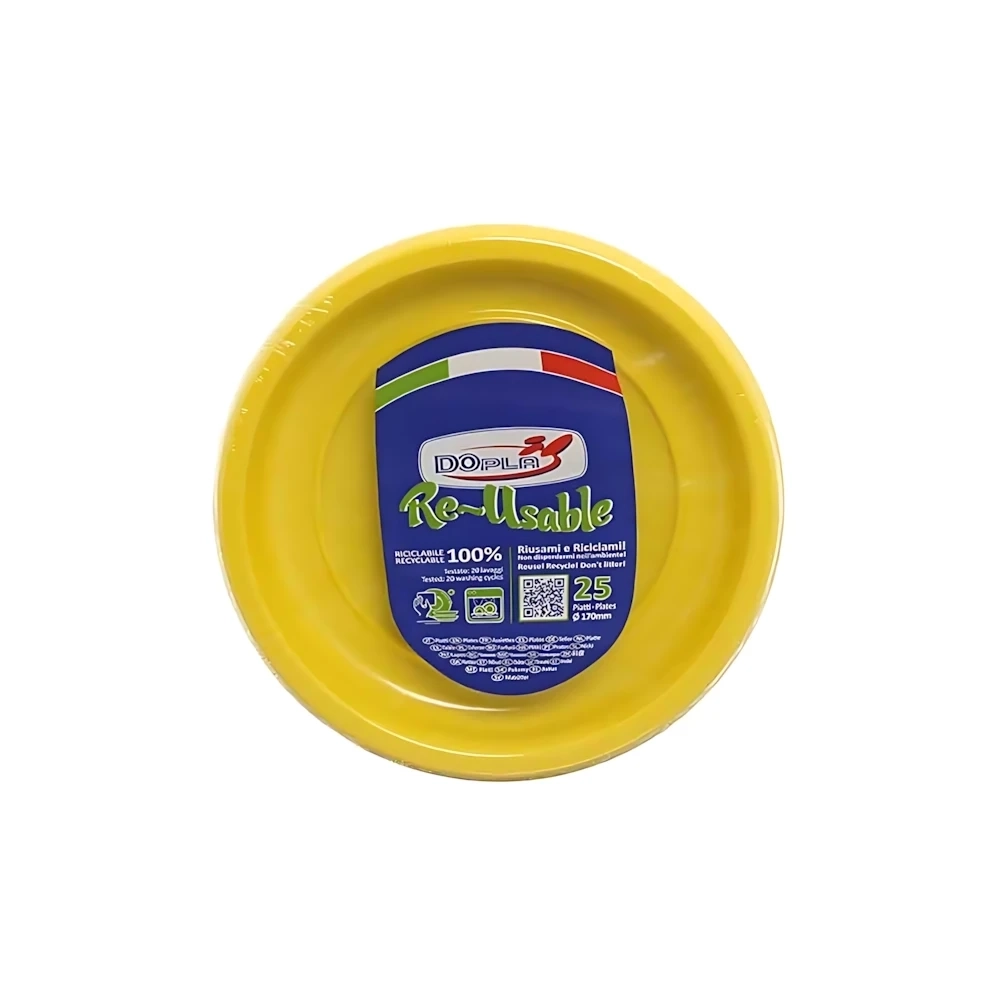Piatti Dopla Gialli Frutta 17cm riutilizzabili, confezione da 25pz.