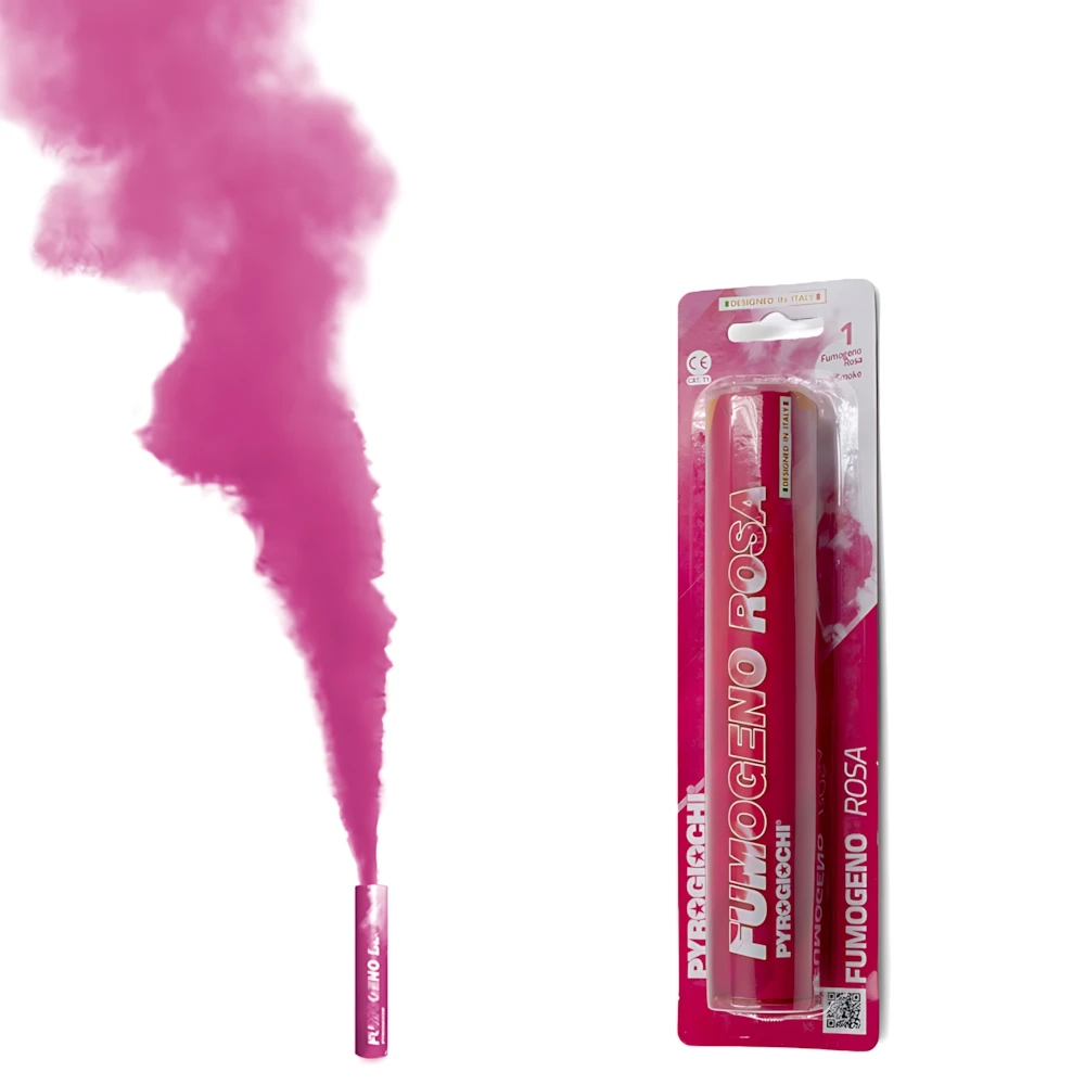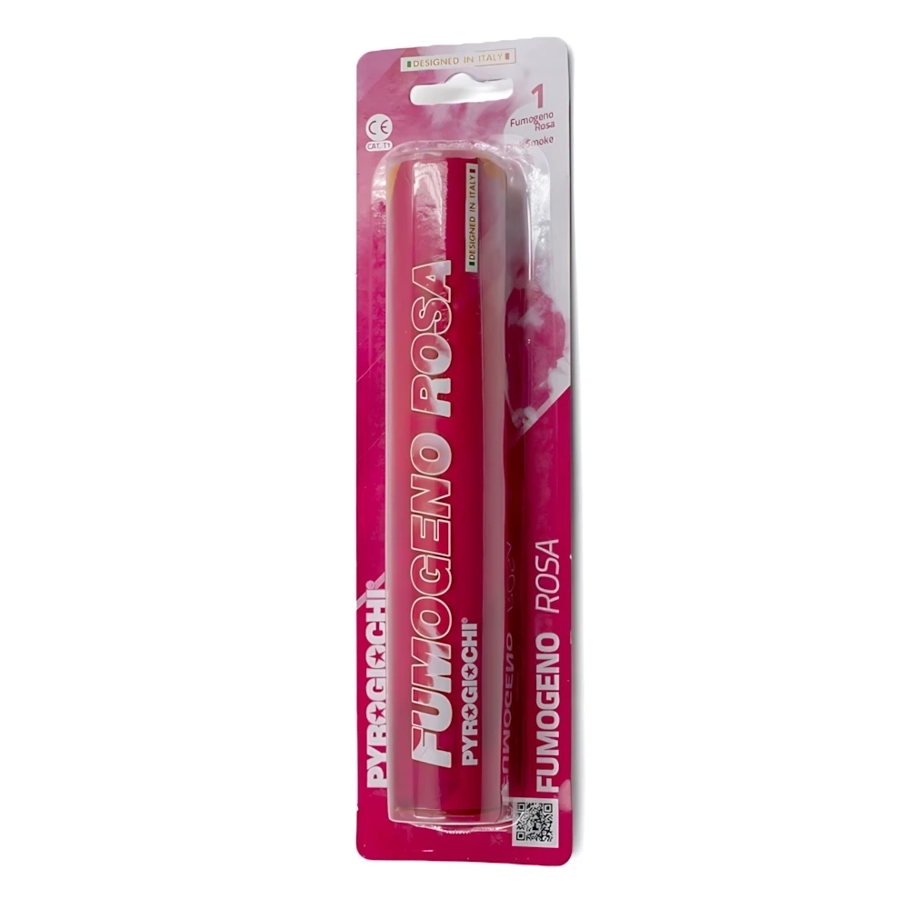 Fumogeno di colore rosa marca Pyrogiochi, confezione da 1pz, cat F1. Il Fumogeno colorato Pyrogiochi dopo l'innesco inizierà a produrre un fumo intenso di colore rosa per circa 60 secondi. Ideale per animare la tua festa all'aperto ,gender reveal party o baby shower. I fumogeni colorati Pyrogiochi non sono un giocattolo, il loro uso è vietato ai minori di 18 anni. Leggere attentamente le istruzioni prima dell'uso. Cat. F1 Categoria pirotecnica F1 Dimensioni: 19,8x3,6cm Colore: Rosa Confezione da 1 Pezzo