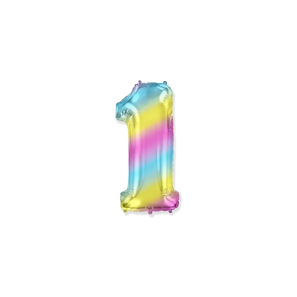 Palloncino Rocca Fun Factory numero 1 Multicolor Gradient in mylar/foil, dimensione 14" (35cm), confezione da 1pz.
