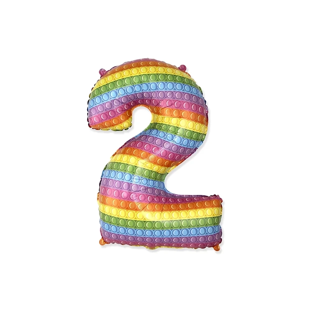 Palloncino Rocca Fun Factory numero due con stampa pop it in mylar/foil, dimensione 32" (81cm), confezione da 1pz.