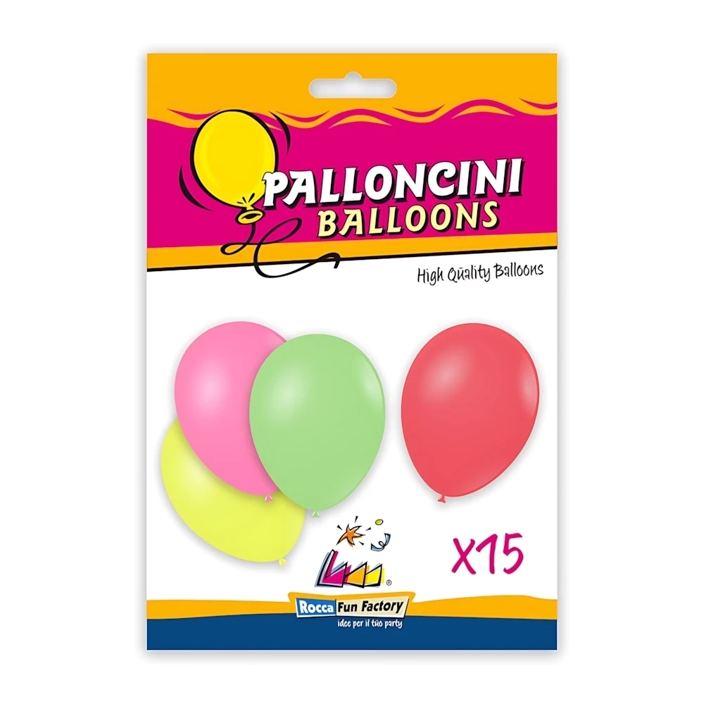 Palloncini in lattice naturale Rocca Fun Factory, linea Classic colori fluo. Dimensione 10" (26cm), colore assortiti, confezione da20pz.