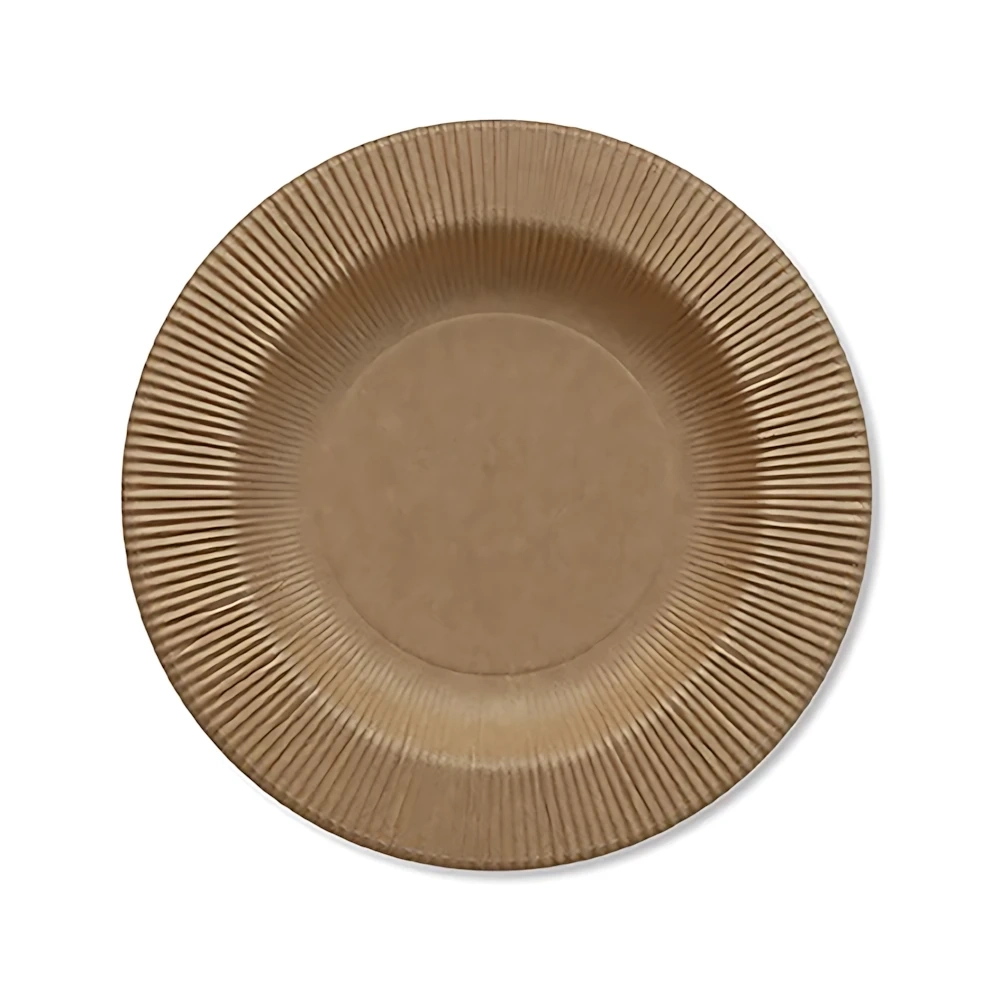 Piatti Kraft fondo in cartoncino compostabile con bordo pieghettato 25cm, confezione da 20pz.